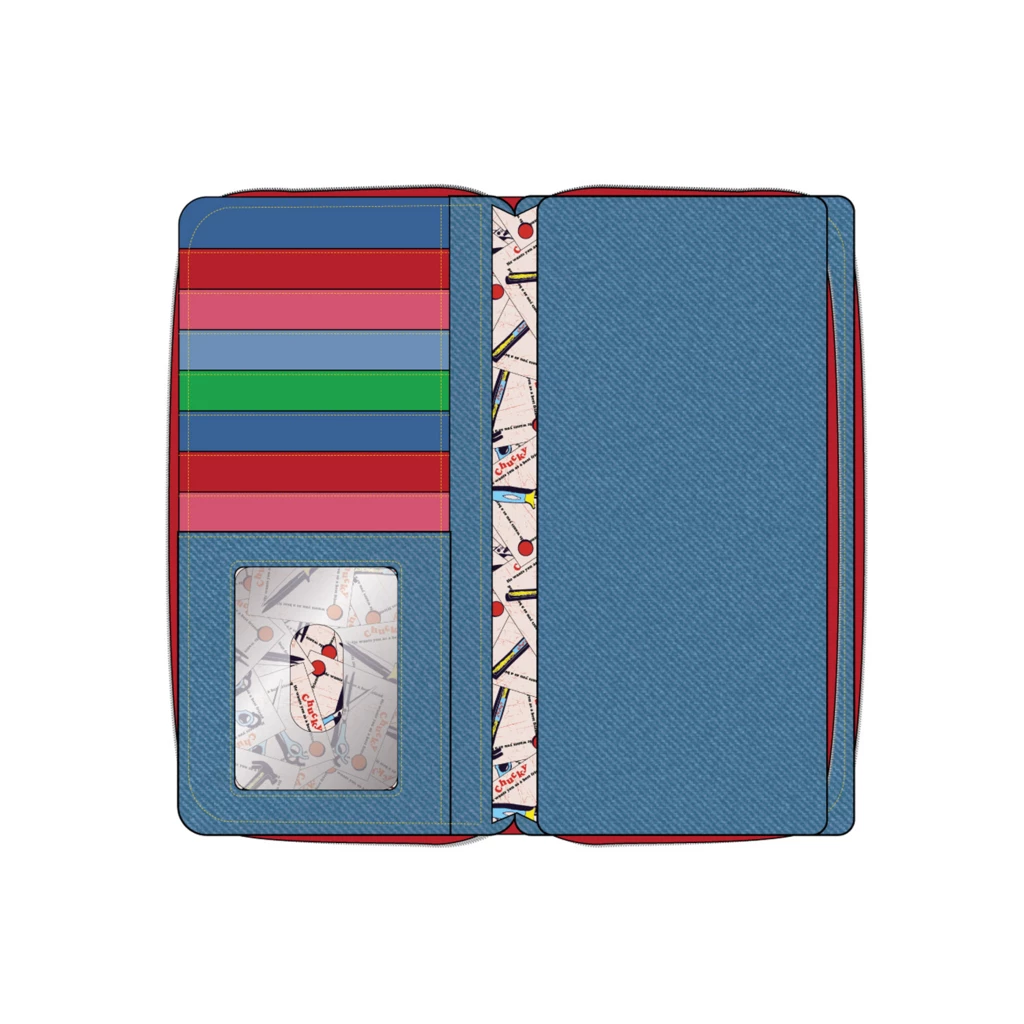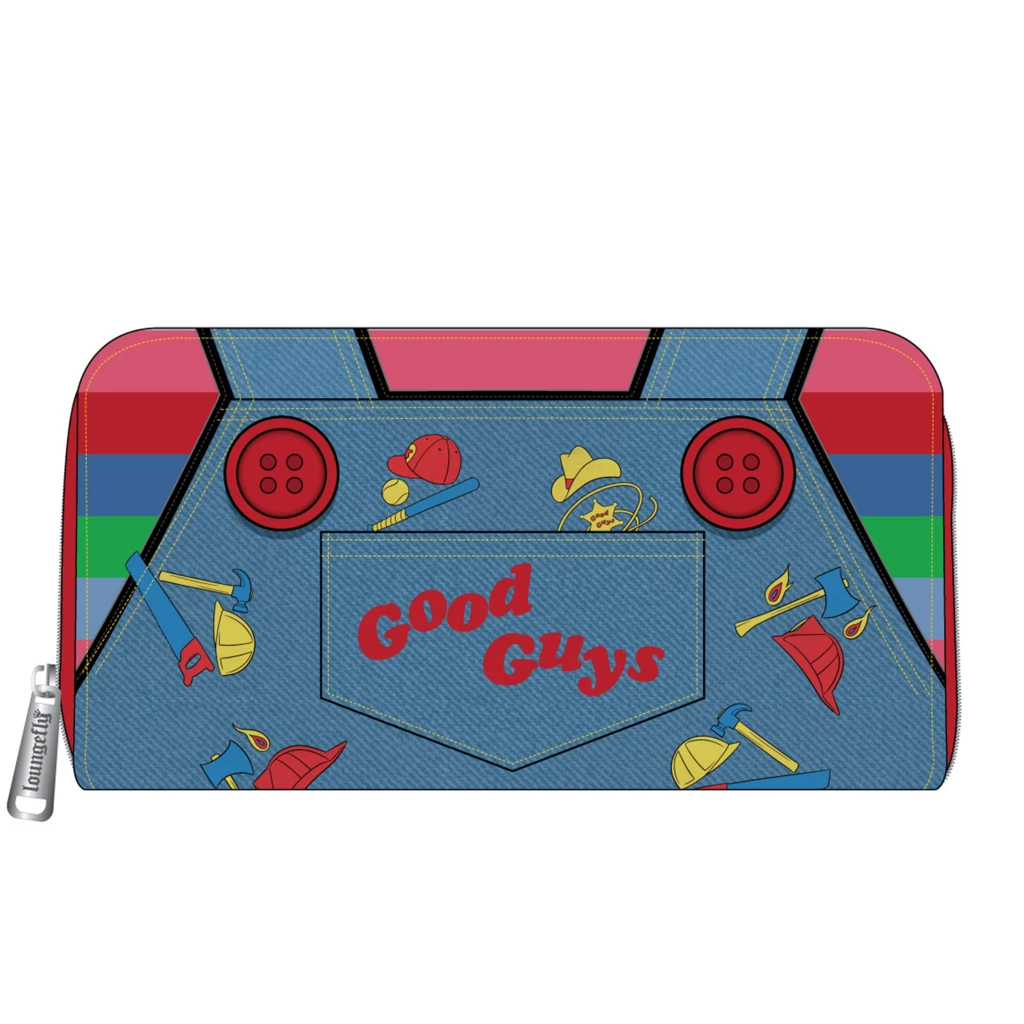 The Loungefly Child’s Play Chucky Cosplay Zip Around Wallet is perfect for carrying your necessities and matches the Childs Play Chucky Cosplay Mini Backpack. The wallet is styled to look just like Chucky’s overalls, complete with real buttons on the front. For some it’s a scary sight and others it’s a devilish delight.