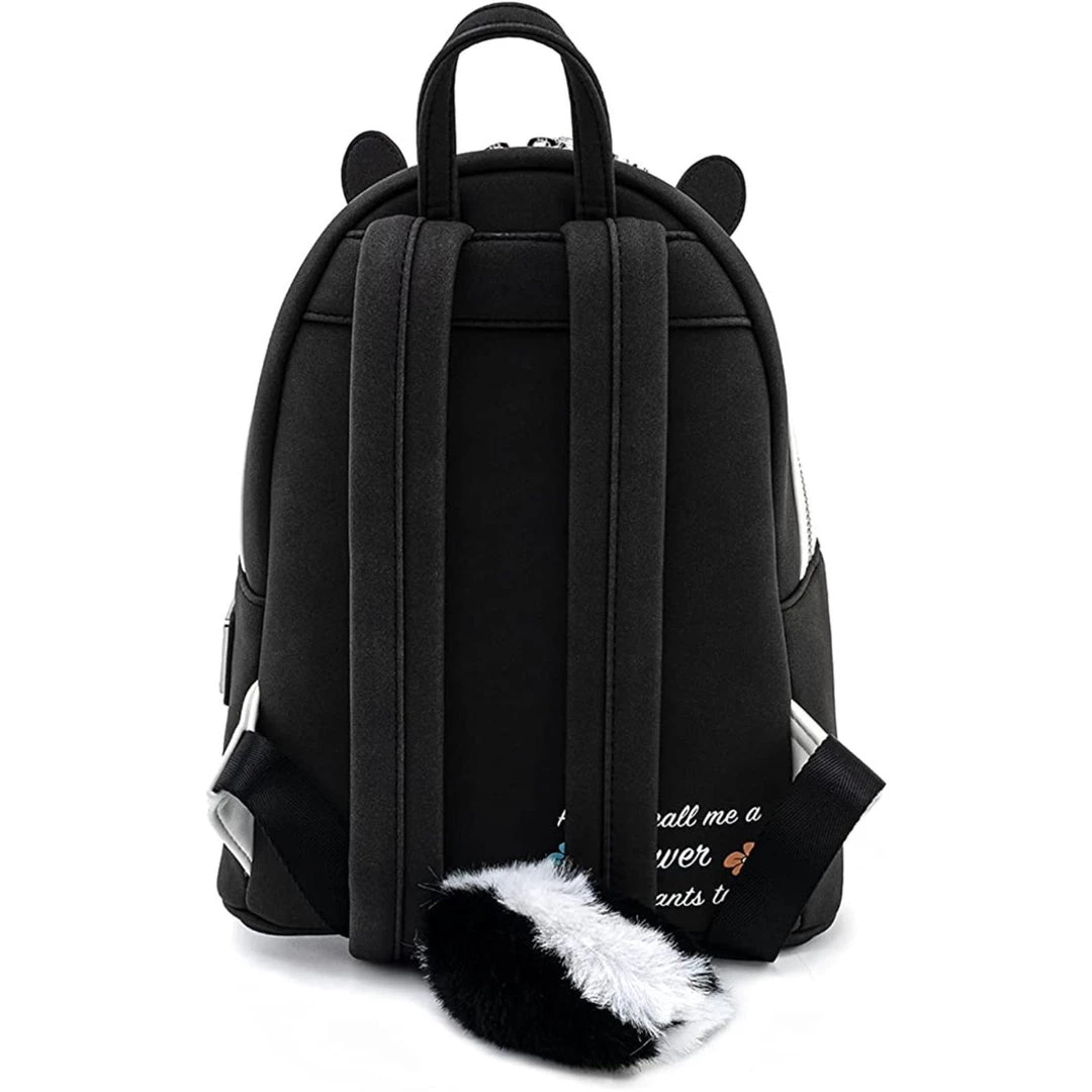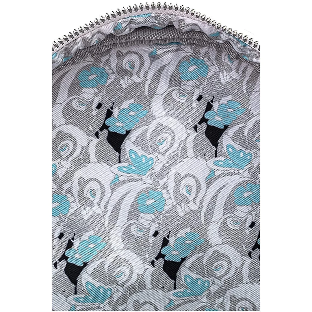 The Disney Bambi Flower Cosplay Mini Backpack is made of vegan (polyurethane) leather and features: adjustable shoulder straps, sturdy metal hardware, enamel zipper charm, applique, plush, debossed, embroidered, and printed details. Take note of the coordinating design of the inside lining fabric.