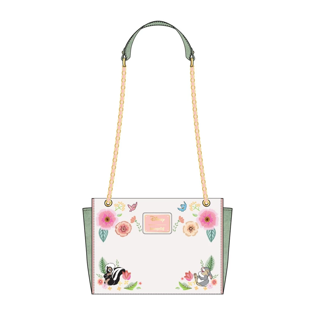 Embark on rejuvenating spring escapades Bambi and friends with the Bambi Spring Time Crossbody Bag. This crossbody is a great accessory for Bambi fans, and it keeps your necessities stylishly contained. The design features Bambi among wildflowers and foliage on the front flap along with a decorative pink bow, with an accent panel of soft green and cream-colored gingham. The back also has additional art of Flower and Thumper, making it a special secret for the wearer. It’s a delightful design that is a must have for any Bambi collection.