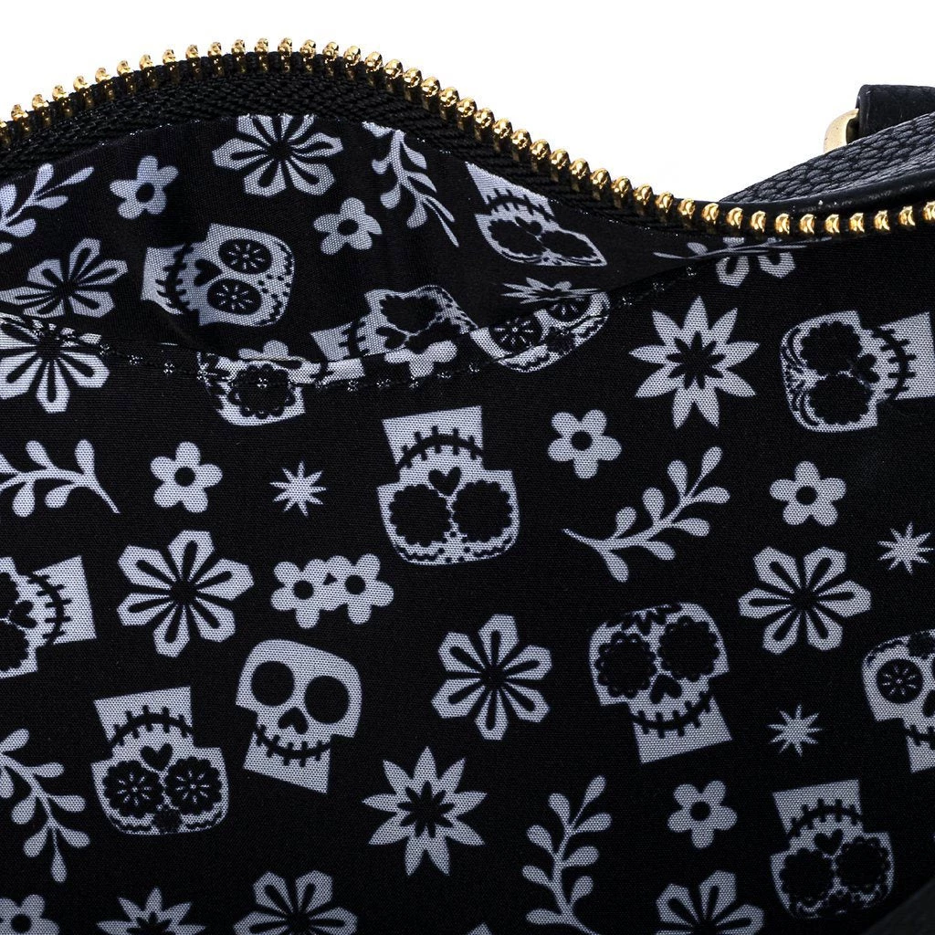 The music—it’s not just in you, it’s on your shoulder! Like Miguel, follow the music in your heart and bring this vibrant guitar-shaped Loungefly bag on all your extraordinary adventures. Inspired by Disney•Pixar’s Coco, this faux leather design is decorated with printed and debossed details, embroidery, interior lining, a removable and adjustable matching patterned strap, and a metal brand badge.Â