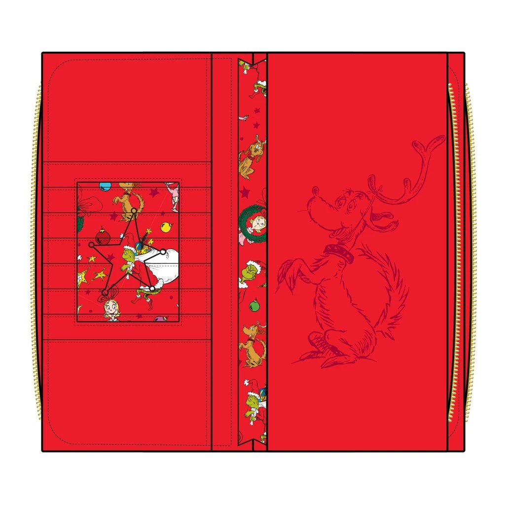 Who-ville is about to get a shock when it encounters the Loungefly Dr. Seuss The Grinch Zip Around Wallet! Somehow Cindy-Lou Who has helped the Grinch see what’s so special about the holidays. On the back you’ll find Max the dog sitting on the sled. Humbugs and holiday heroes alike will love this wallet.