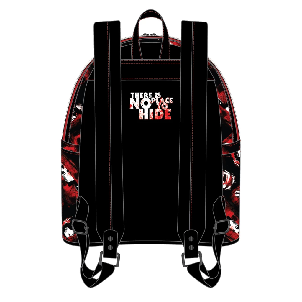 Michael Myers is on the move again! The Loungefly Halloween II Michael Myers Pumpkin Mini Backpack makes him more mobile than ever. The front pocket features the iconic carved pumpkin from the movie and peering above it is Michael Myers. It’s a scary sight making it a perfect Halloween accessory.
