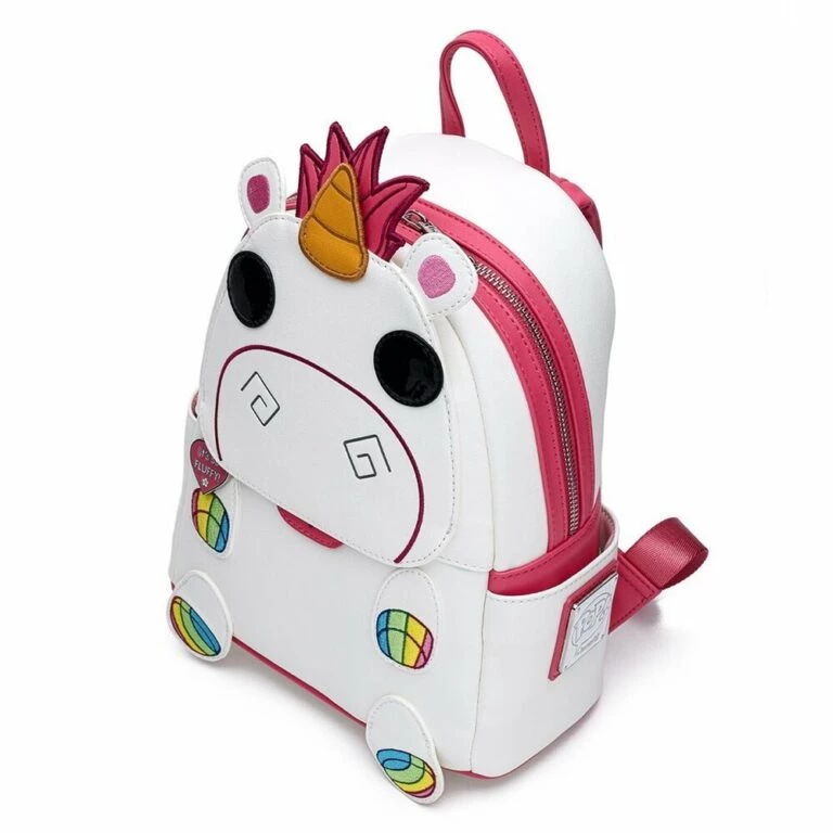 t’s so fluffy! Okay, it’s not. But, this Loungefly Mini Backpack Minions Fluffy Unicorn is just as adorable as the plush toy Gru won for Agnes at the amusement park! Designed with colorful faux leather and appliqued details this trendy and practical bag is a must-have for any fan of Despicable Me.