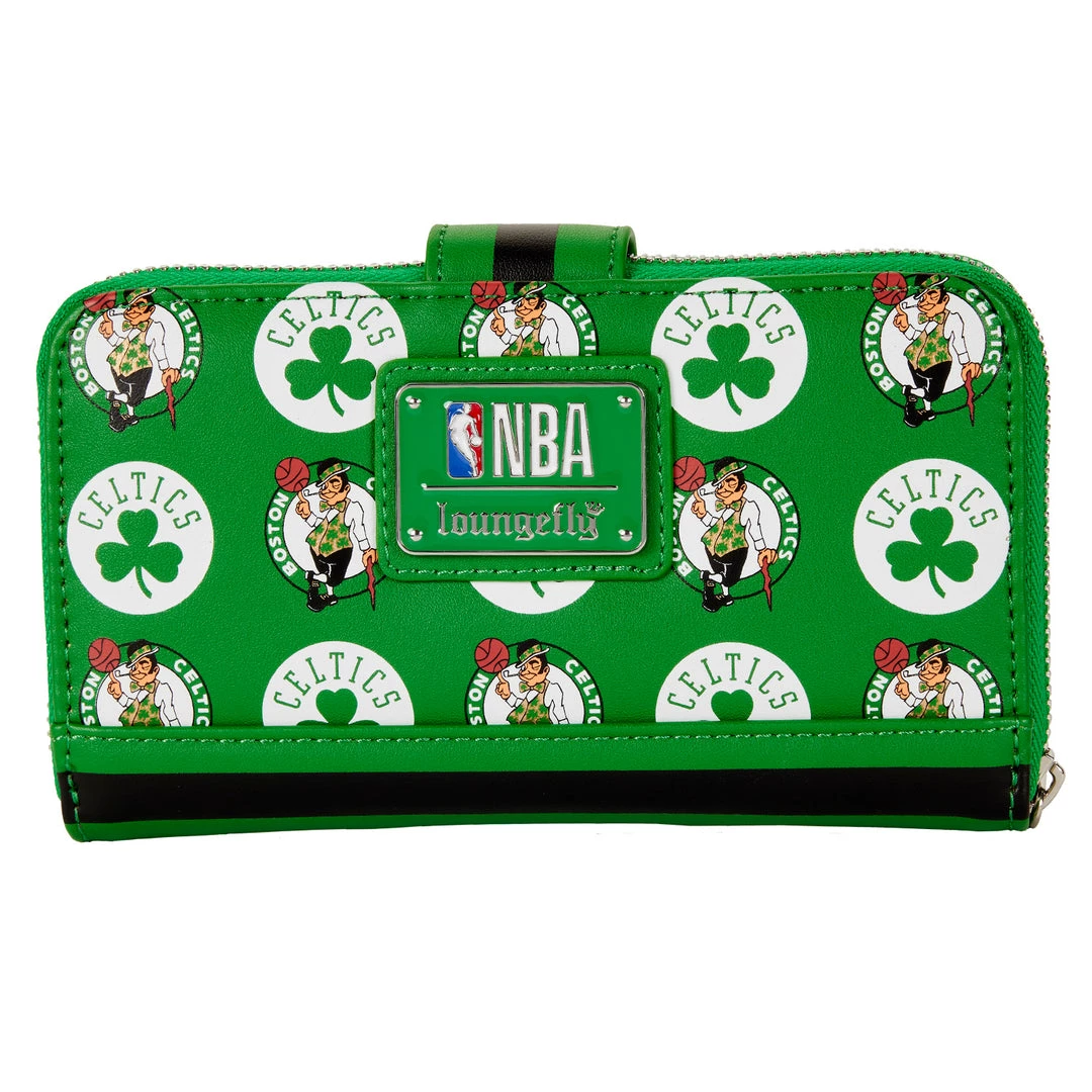 Score a slam dunk with the NBA Boston Celtics Logo Zip Around Wallet. A motif of the Celtics and shamrock logo, alternates with Lucky the leprechaun, spinning a basketball.
