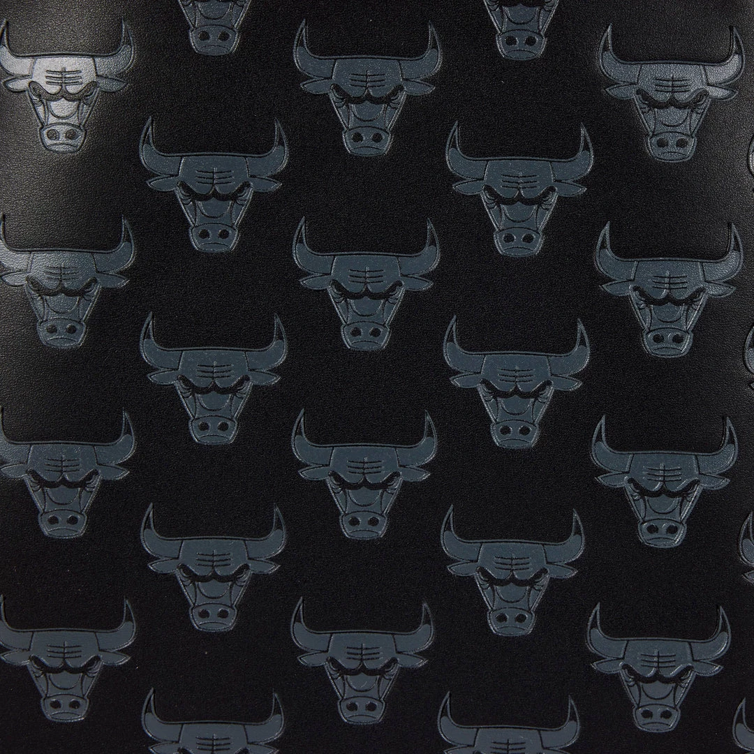 Charge towards the playoffs and show your team spirit with this NBA Chicago Bulls Logo Mini Backpack. On the front, the iconic mascot wears a look of determination, with the tip of its horns tinged red. The logo patch is embroidered and prominently placed above the zipped compartment in front. The vegan leather (polyurethane) bag carries a debossed motif of the horned logo against a black background. Red straps and red trim add accents in team uniform color.