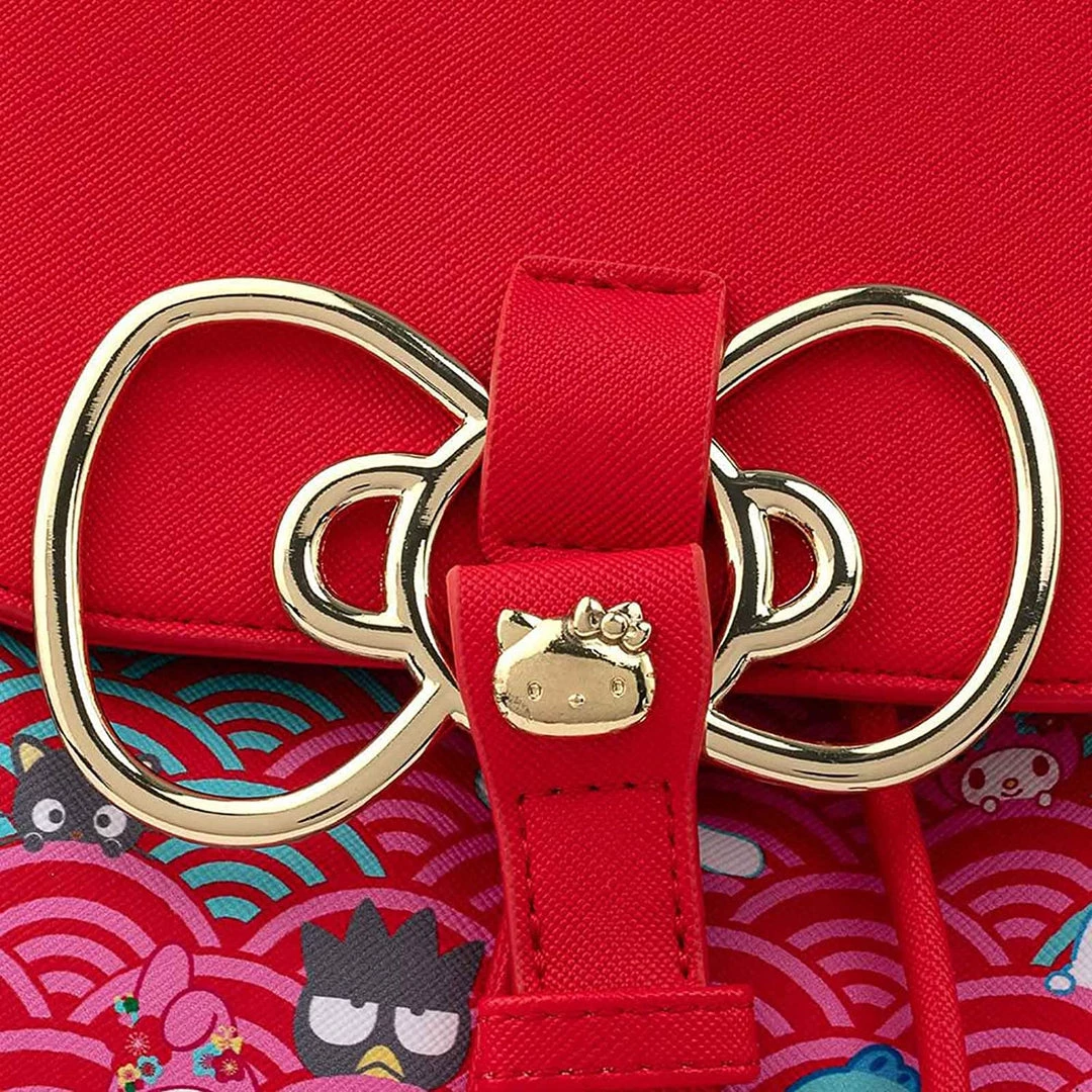 Sanrio is celebrating its 60th Anniversary and a whole crowd has gathered. Hello Kitty, Chococat, Pom Pom Purin, Kero Kero Keroppi, Cinnamoroll, and Hangyodon can all be seen in this backpack’s all-over-print design. The Sanrio 60th Anniversary Gold Bow AOP Backpack is the perfect accessory for fans of Sanrio and their classic characters. The Sanrio 60th Anniversary Gold Bow AOP Backpack is made of vegan (polyurethane) leather.