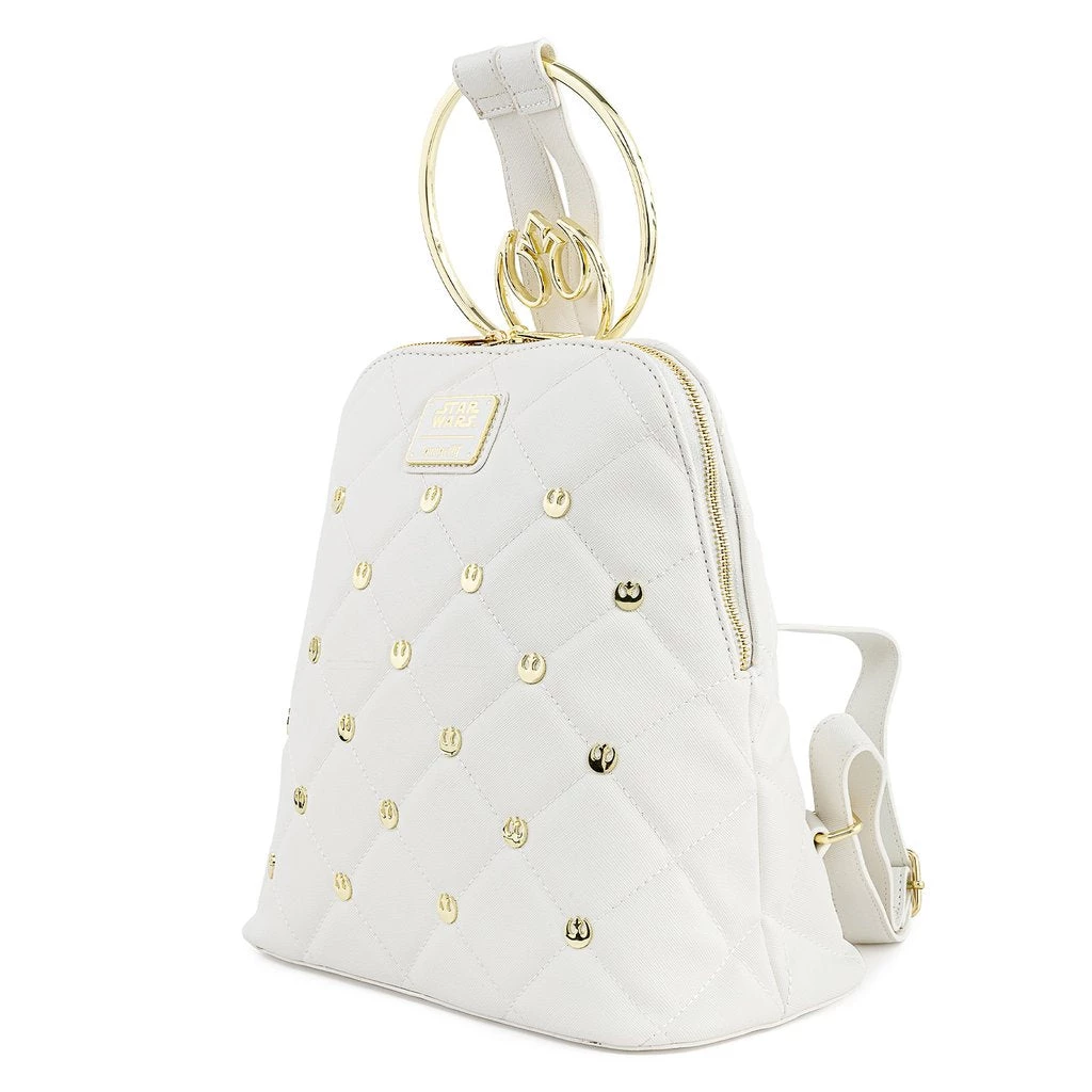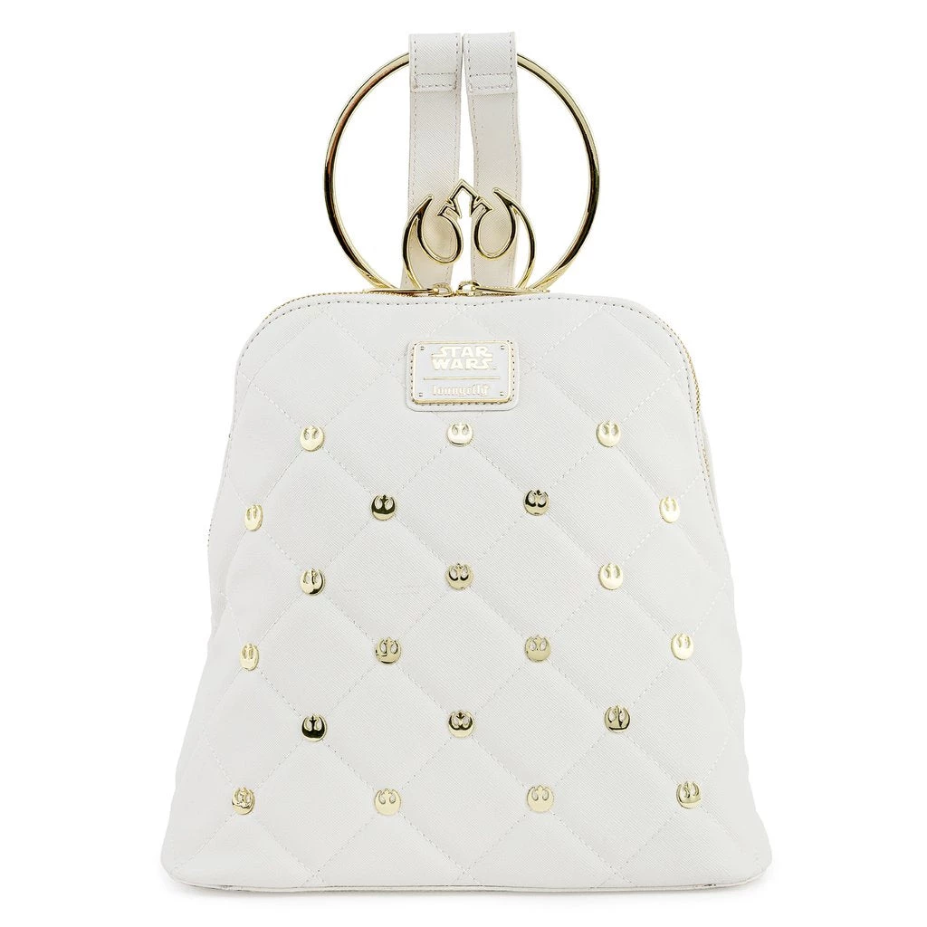 The Loungefly Star Wars Rebel Collection continues with the Star Wars Rebel Mini Backpack. Whether you’re traveling to the next Senate meeting or on your way to lead the next Rebel mission, the Rebel backpack is an elegant and convenient way to carry your necessities. This bag is a great accessory to accompany your cosplay, or a sophisticated everyday bag too.