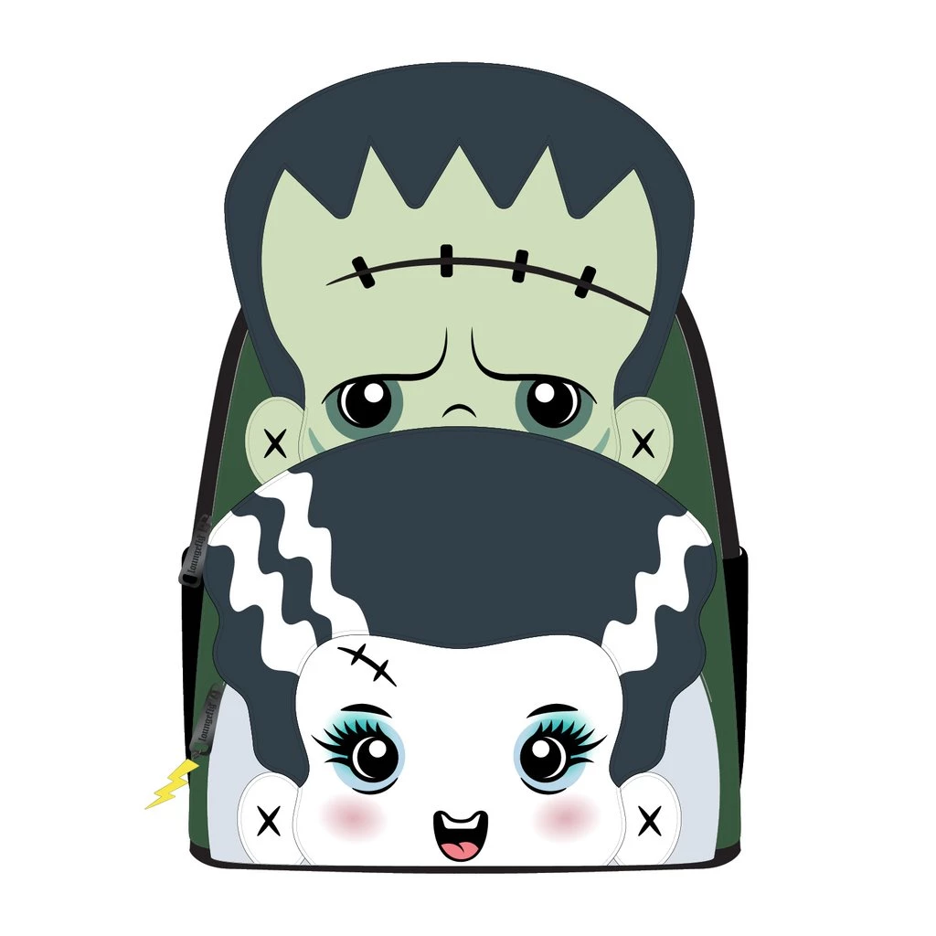 This year feature some of your favorite Universal Monsters with the Loungefly Universal Monsters Frankenstein and Bride of Frankenstein Cosplay Mini Backpack. These fun versions of Frankenstein and Bride of Frankenstein take over the front of the backpack and the heart on the back reads “Shockingly cute together”. It’s a darling design and an adorable accessory for Halloween-themed outfits.